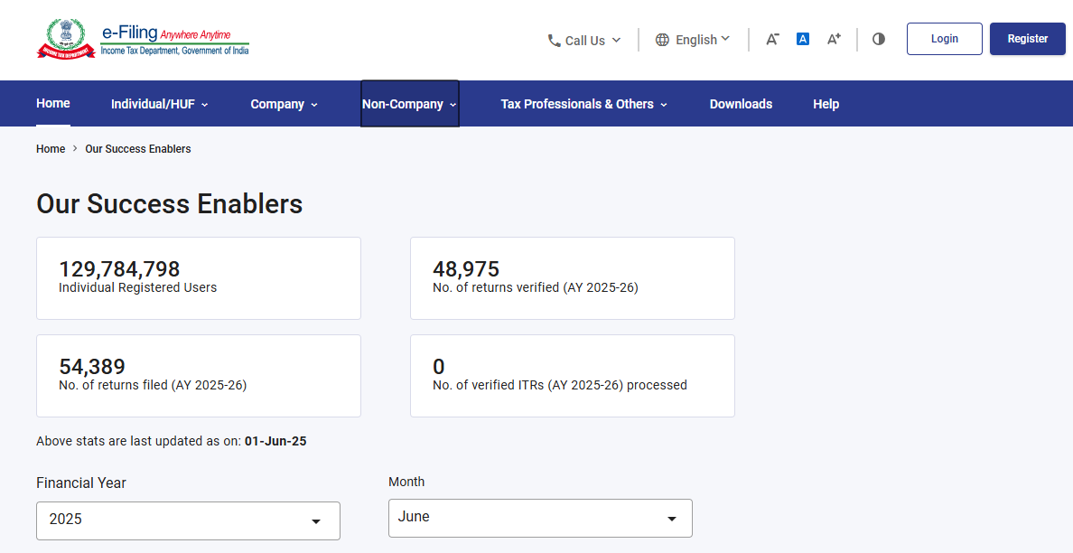 As per data from the website of the Income Tax Department, 54,389 ITRs have been submitted for FY 2024-25. Out of these filed ITRs, 48,975 have been verified. However, no ITR has been processed till now.