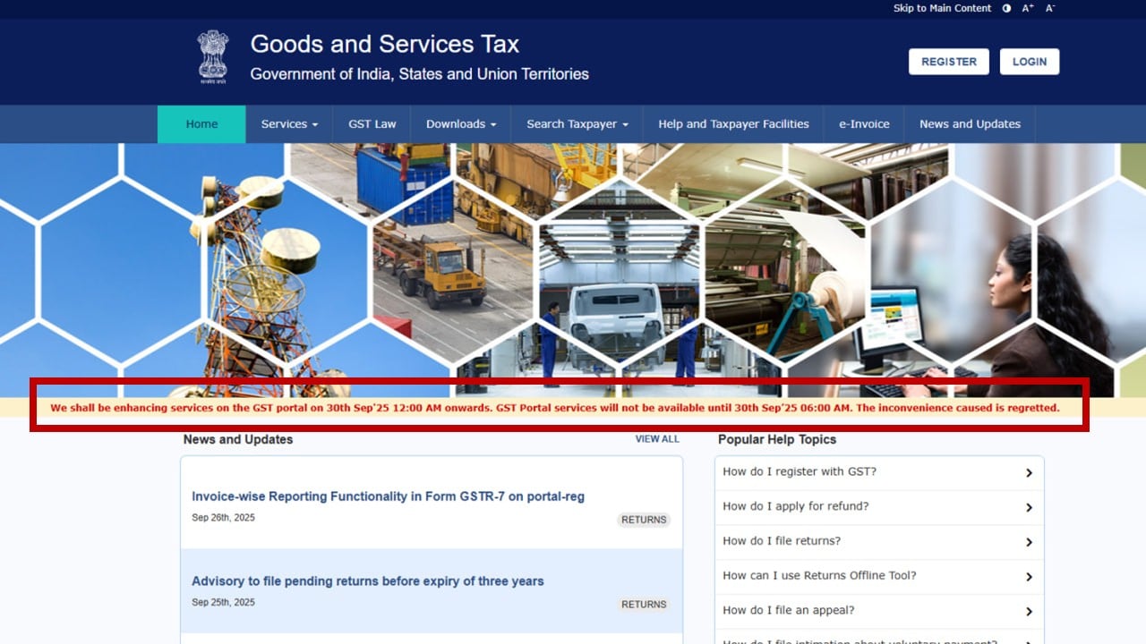 Portal services including return filing, registration, and payments will remain unavailable during the downtime. Taxpayers are recommended to complete their pending compliance tasks in advance.