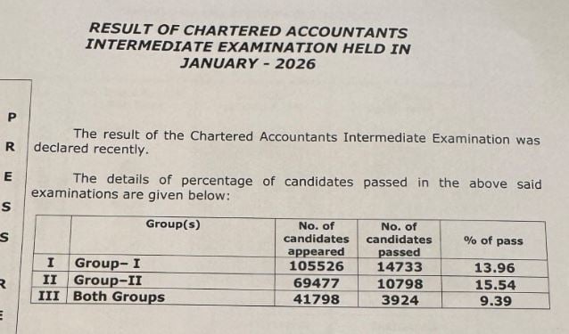 The Institute of Chartered Accountants of India (ICAI) has successfully announced results for the Chartered Accountants (CAs) Foundation and Intermediate examinations held in January 2026 on its official website, i.e., icai.nic.in. Candidates who appeared for the examination will be able to access their scorecards using their Registration Number and Roll Number.