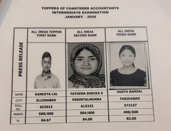 ICAI Announces Results of CA Intermediate and Foundation January 2026 Examination: Know Toppers’ Names